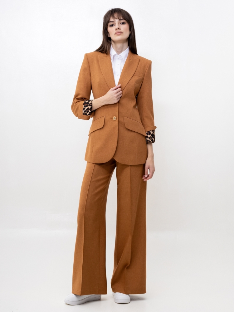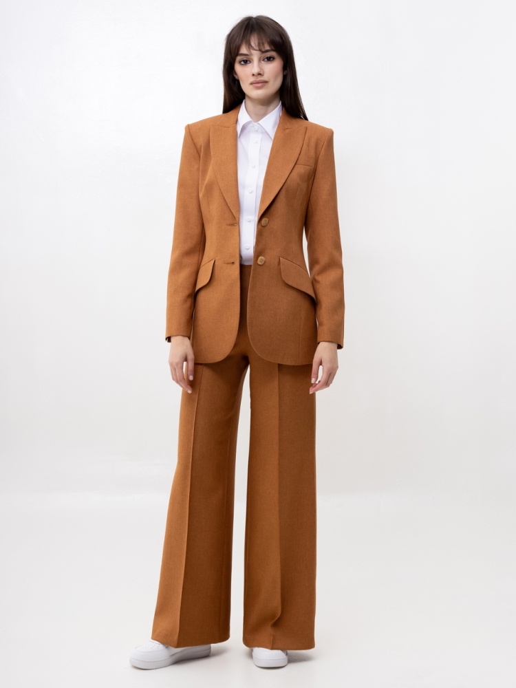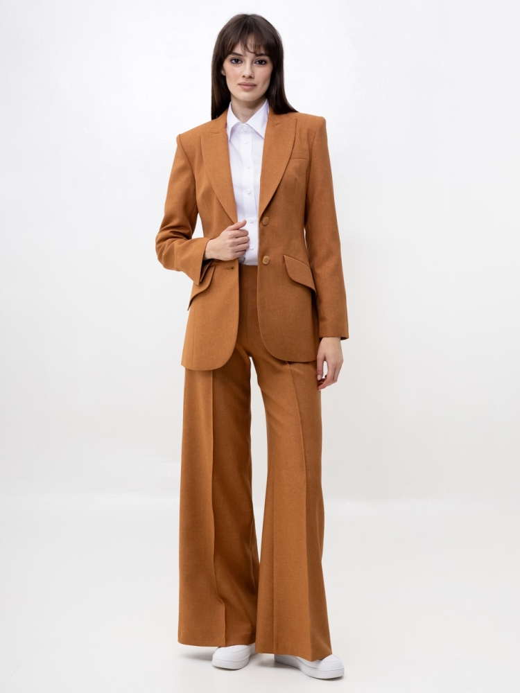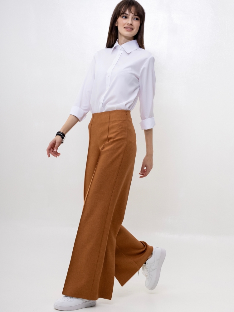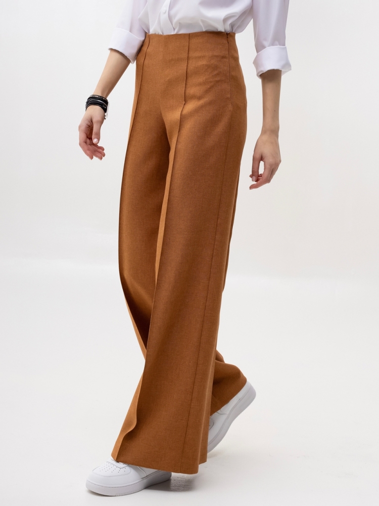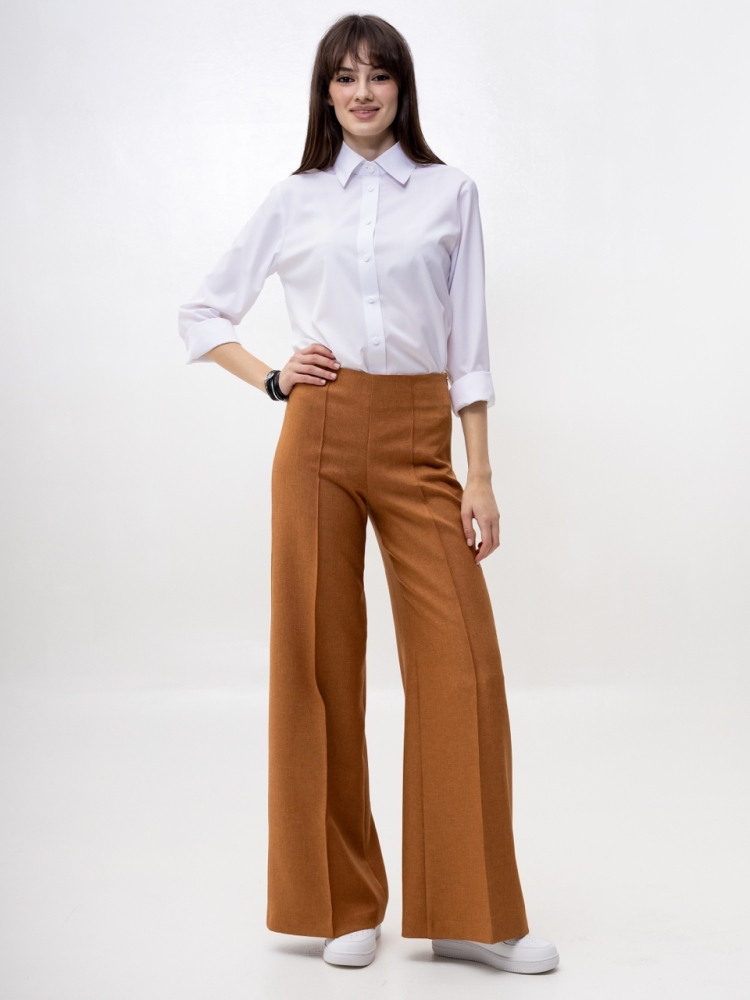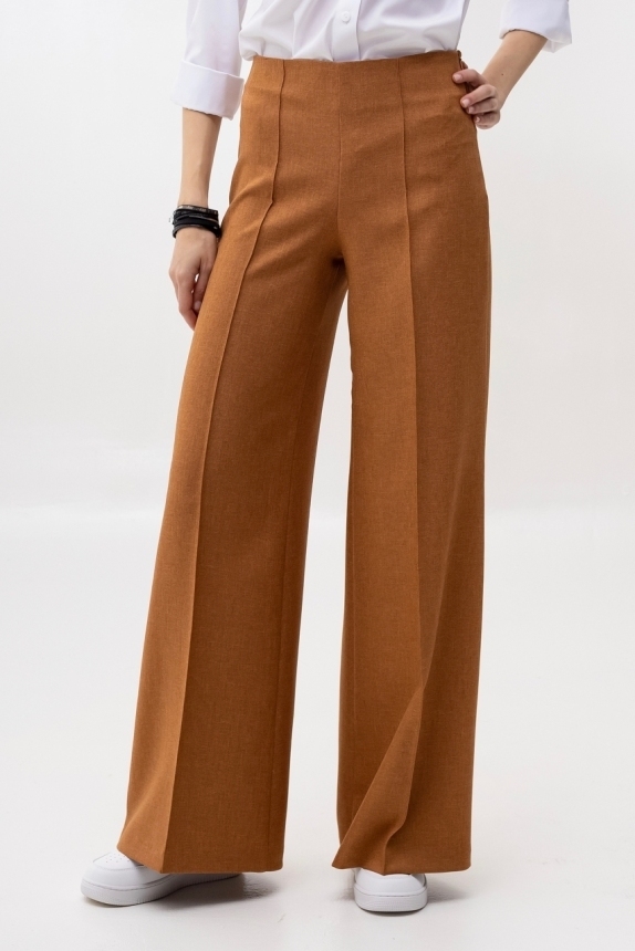 Широкие брюки - тренд сезона! Эта вещь свяжет воедино весь гардероб. Беря их за основу, можно составить бесчисленное множество комбинаций - для работы, для отдыха и даже для торжественных поводов. Сбоку предусмотрена потайная застежка "молния". Посадка высокая. Пояс на обтачке. По по всей длине брюк заутюжены стрелки. По переду изделие оформлено бисерной строчкой. Ткань - костюмная средней плотности. Без карманов. Рост девушки модели - 175 см., размер - 42. К этим брюкам мы предлагаем жакет, артикул - 00506/2. Вместе они составят просто идеальный костюм!