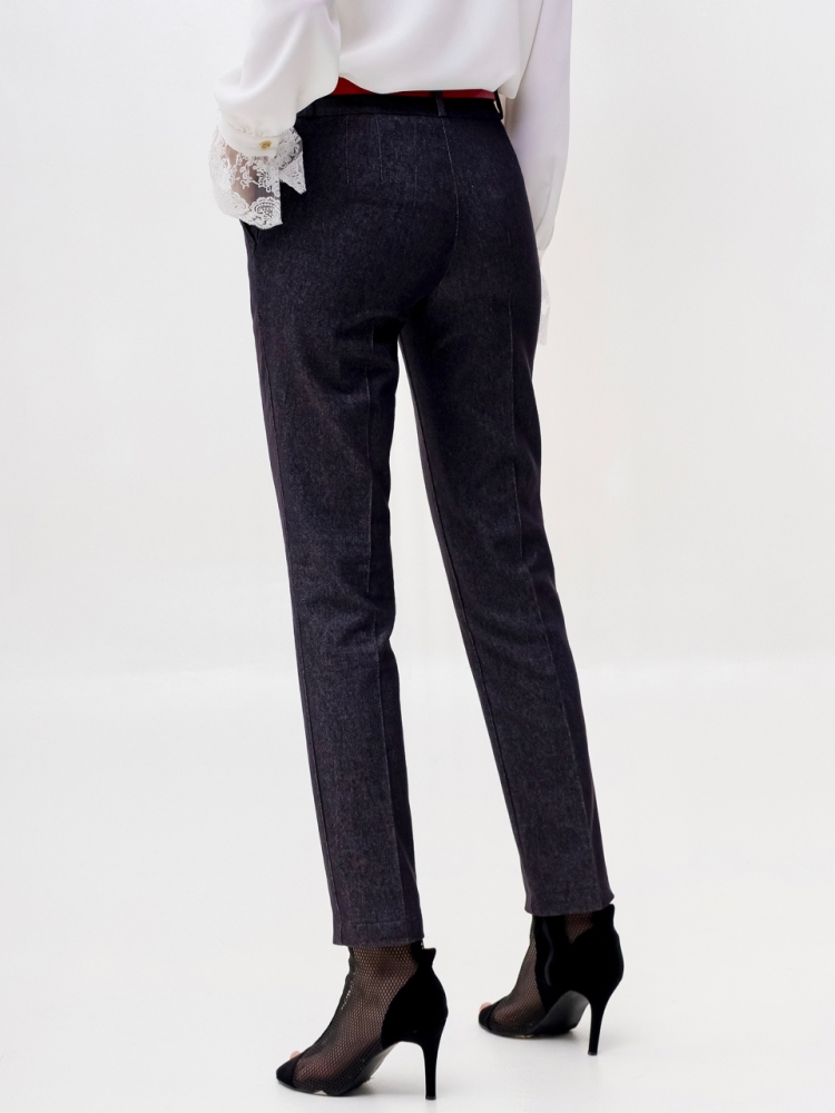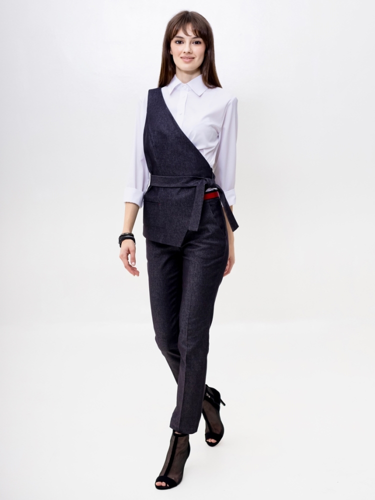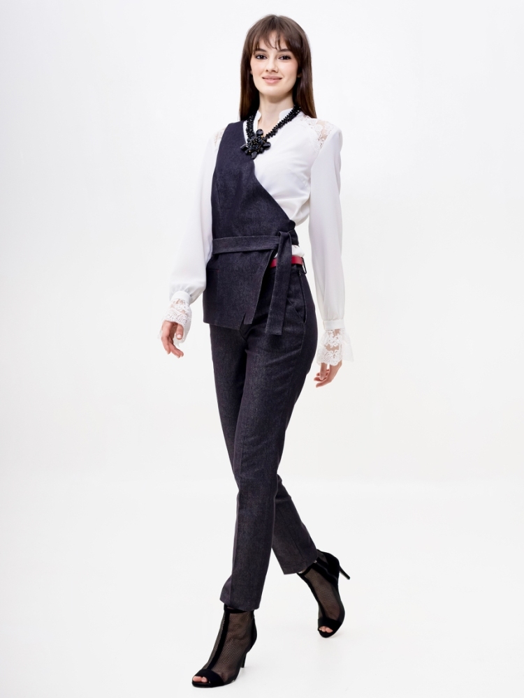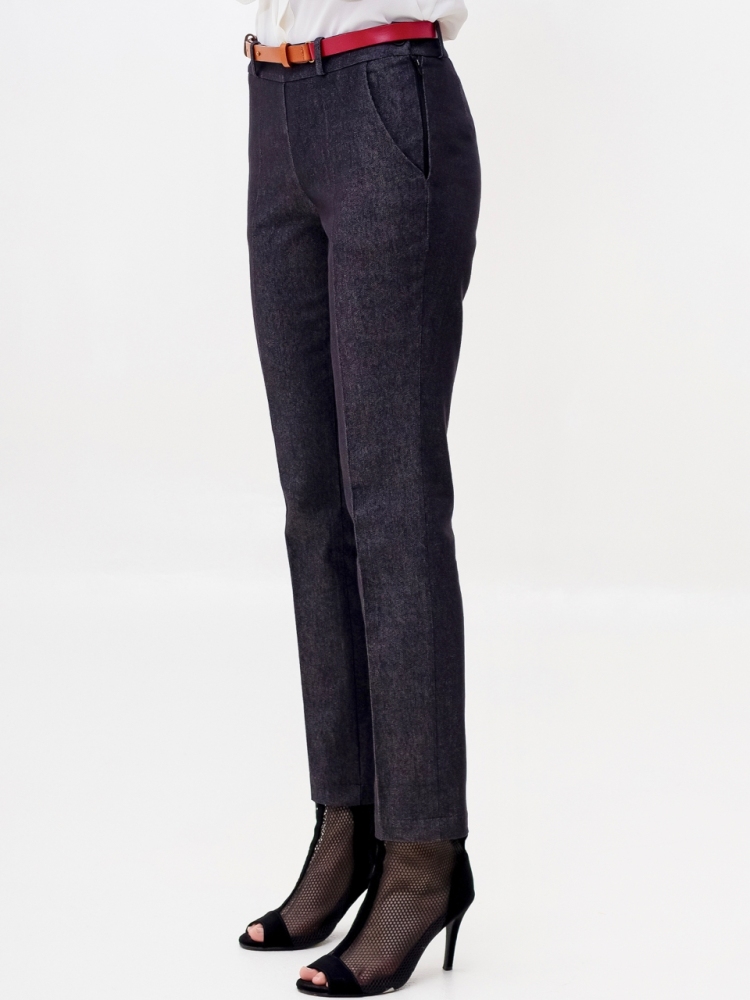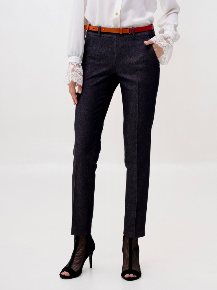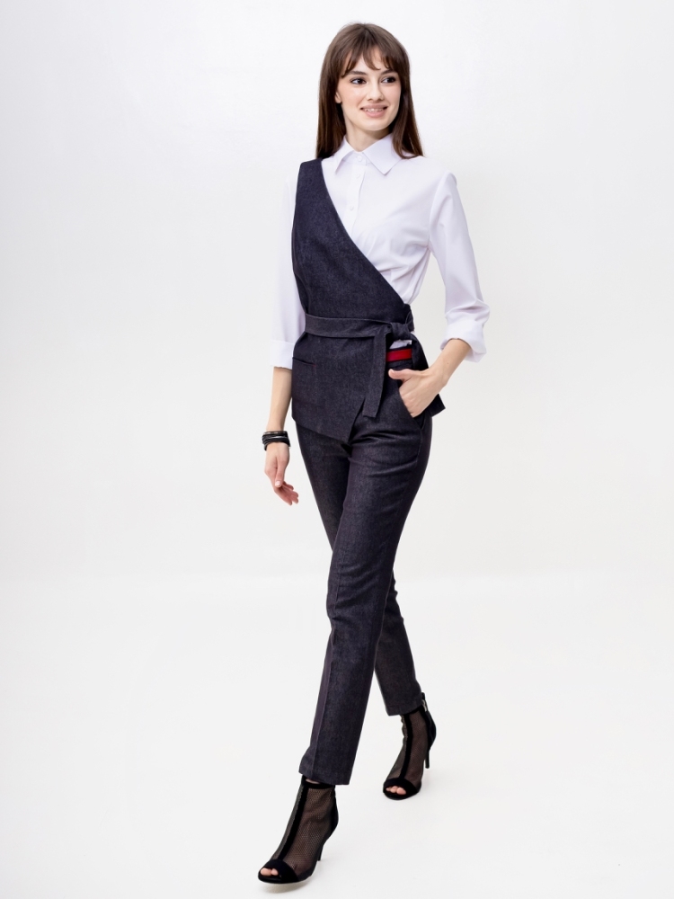 Стильные джинсовые брюки зауженного к низу силуэта, модной длины 7/8, выполнены из высококачественной стрейчевой джинсовой ткани средней плотности. Посадка средняя, в верхней части выполнен узкий пояс на шлевках для ремня с застёжкой на молнию и пуговицу сбоку. Спереди на бёдрах - внутренние карманы с "косыми" входами. По всей длине брюк заутюжены стрелки. Брюки отлично скроены и садятся по любой фигуре идеально. Эта лаконичная, удобная и очень актуальная модель несомненно станет основой вашего базового гардероба. Рост девушки модели - 175 см., размер-42. К этим брюкам в нашем интернет-магазине Вы можете приобрести эффектный жилет, артикул - 00529. Вместе получается шикарный комплект.