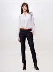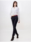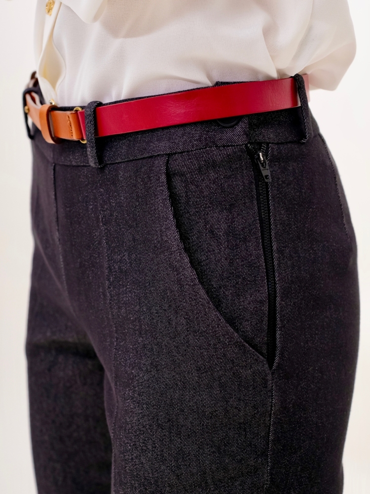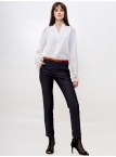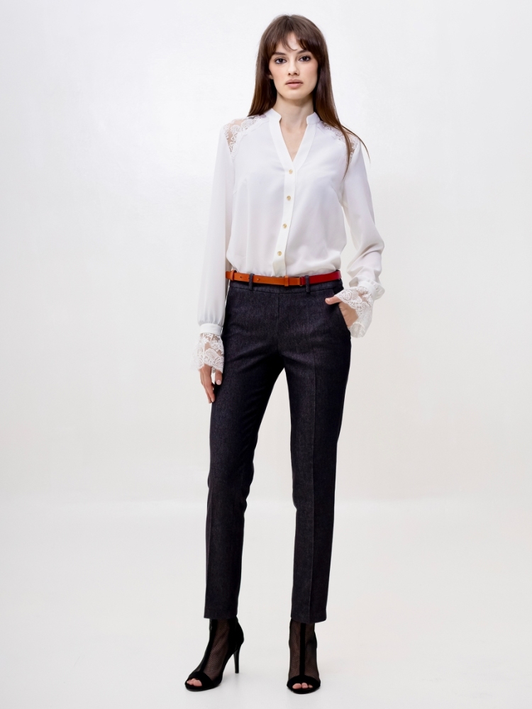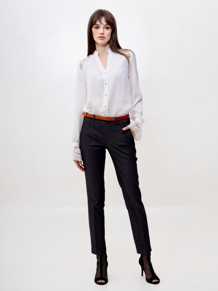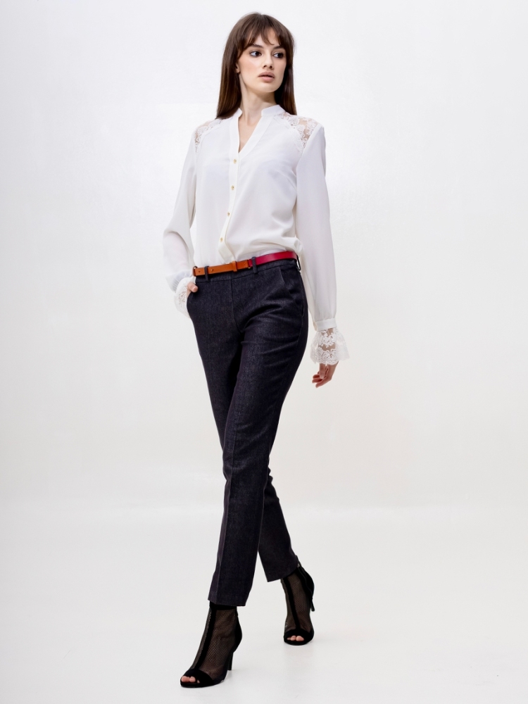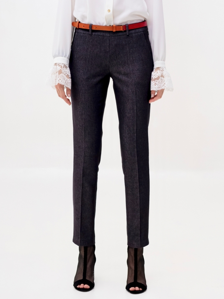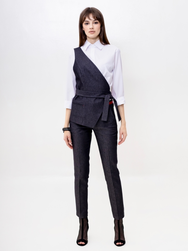 Стильные джинсовые брюки зауженного к низу силуэта, модной длины 7/8, выполнены из высококачественной стрейчевой джинсовой ткани средней плотности. Посадка средняя, в верхней части выполнен узкий пояс на шлевках для ремня с застёжкой на молнию и пуговицу сбоку. Спереди на бёдрах - внутренние карманы с "косыми" входами. По всей длине брюк заутюжены стрелки. Брюки отлично скроены и садятся по любой фигуре идеально. Эта лаконичная, удобная и очень актуальная модель несомненно станет основой вашего базового гардероба. Рост девушки модели - 175 см., размер-42. К этим брюкам в нашем интернет-магазине Вы можете приобрести эффектный жилет, артикул - 00529. Вместе получается шикарный комплект.