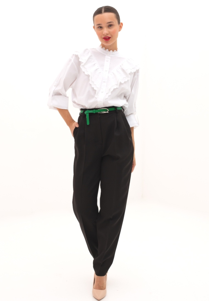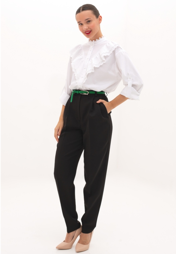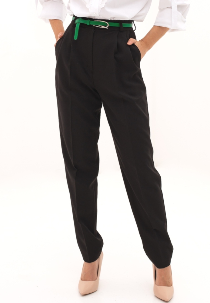Трендовые брюки "бананы" от бренда GSFR, выполнены из костюмной ткани средней плотности. Детали: модель брюк - "бананы", посадка - высокая. По переду застежка на гульфик и пуговицу. По бокам карманы с "косыми" входами. По переду брюк заложены по две складке с каждой стороны и заутюжены "стрелки", что делает силуэт визуально стройнее. По спинке - вытачки. На поясе предусмотрены шлёвки для ремня. Рост девушки модели - 170 см. Размер-42