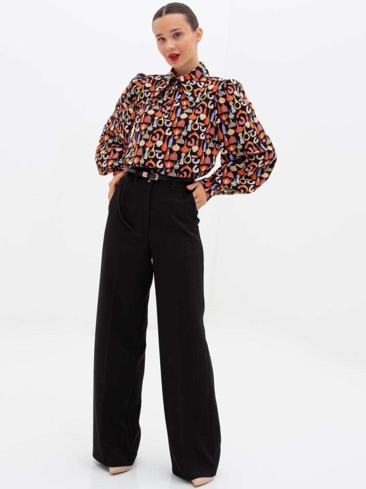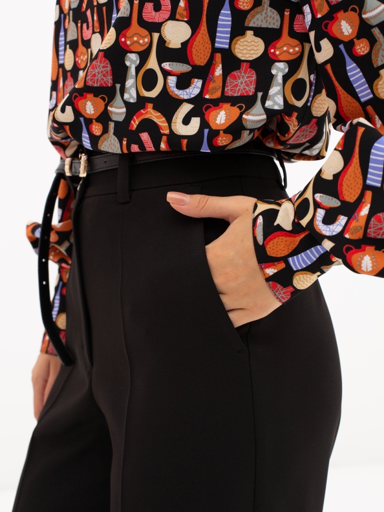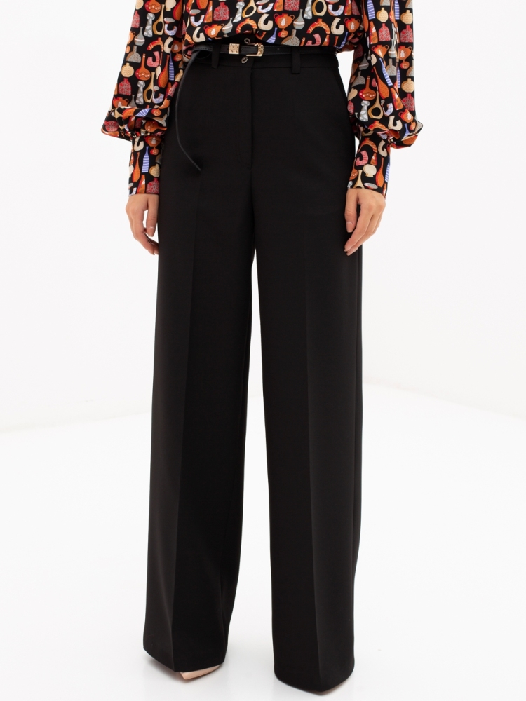 Трендовые широкие брюки в красивом сочном цвете, выполнены из мягкой костюмной стрейчевой ткани турецкого производства. Детали: модель брюк - широкие, по всей длине брюк заутюжены стрелки. Посадка - на талии. Шлевки для ремня на притачном поясе. По бокам - карманы с отрезным бочком. Рост девушки-модели - 170 см., размер - 42.