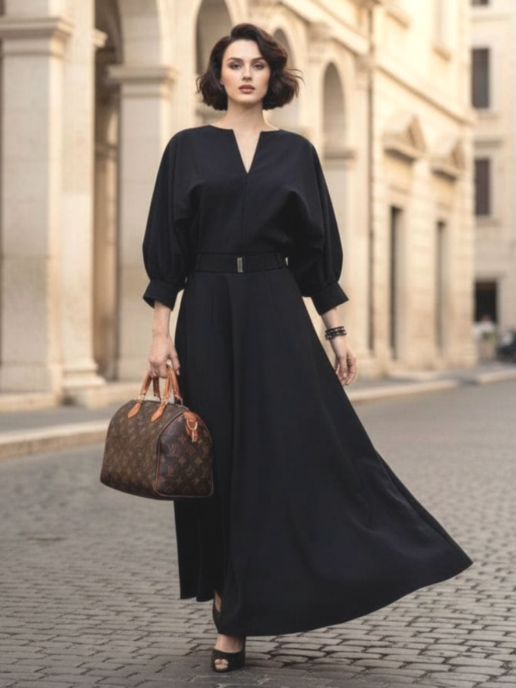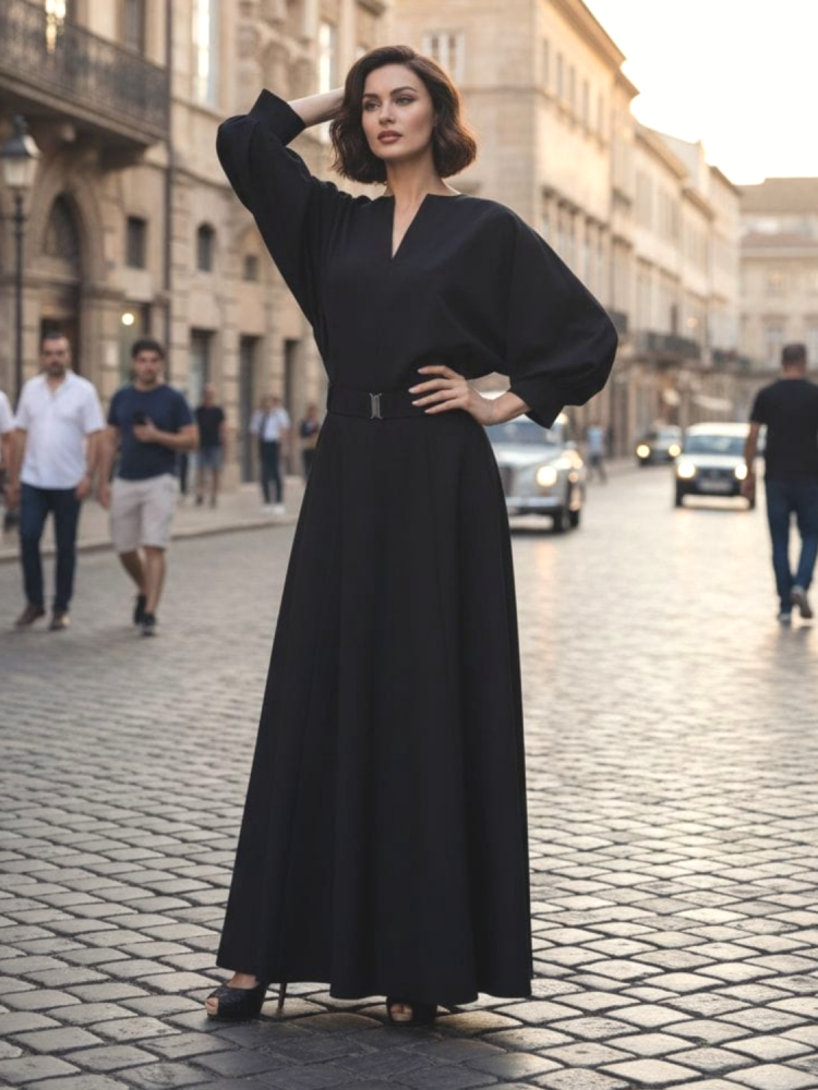 Платье-кимоно в стиле "Pinterest" от GSFR — это воплощение элегантности и комфорта, созданное для современных женщин, ценящих стиль и свободу движений. Сшитое из тонкой костюмной ткани, оно струится по фигуре, подчеркивая ее естественные изгибы. Длина макси и свободный покрой делают его идеальным выбором для любого случая, от повседневных прогулок до вечерних выходов. Оригинальные рукава кроя "летучая мышь" на широких манжетах придают образу особый шик, а отрезное по линии талии делает силуэт еще более женственным. Потайная молния сбоку и застежка на пряжку на поясе обеспечивают удобство носки. В комплекте идет стильный пояс, который вы можете использовать по своему желанию, подчеркивая талию или создавая более расслабленный образ. Карманы по бокам добавляют практичности. Модель без подкладки. Рост девушки-модели - 170см., размер -42.