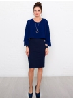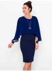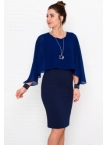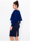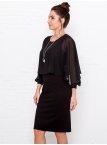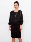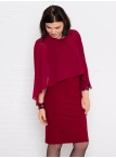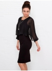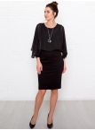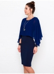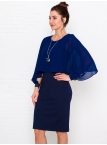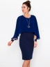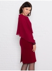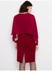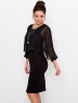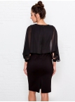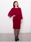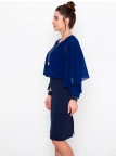 Это нарядное платье для особого случая выполнено из плотного, держащего форму и скрывающего мелкие недостатки фигуры, трикотажа джерси в сочетании с креп-шифоном и отделкой пайетками на манжетах. Детали: вырез горловины округлый. Верх платья в форме накидки имеет фигурный низ, которая переходит в красивый рукав, заканчивающийся красивыми манжетами. Нижняя часть платья в форме футляра с зауженной к низу юбкой выполнена из плотного трикотажа. По спинке - потайная застежка "молния" и шлица. Без подклада. Рост девушки модели - 170 см.