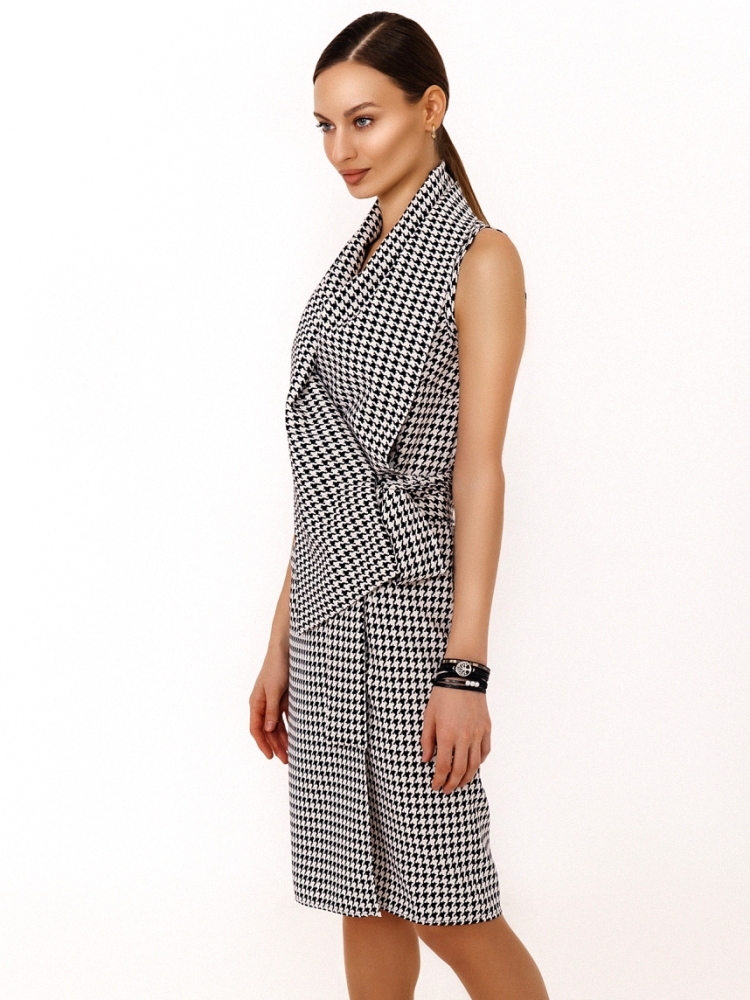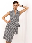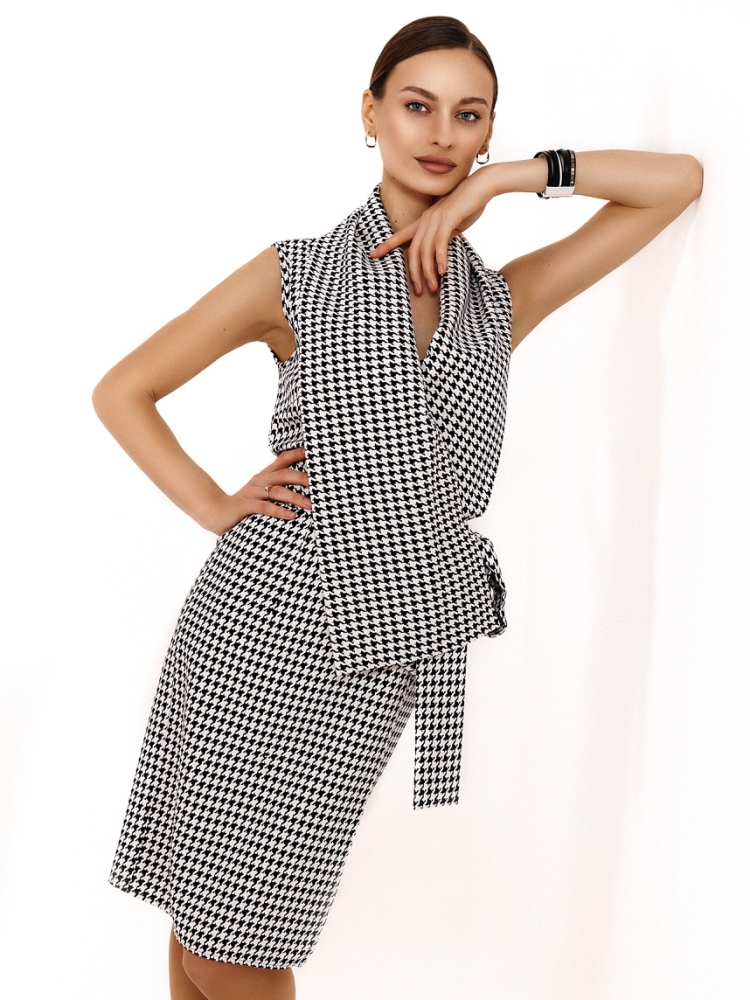 Этот сарафан - настоящий шедевр! Необычный фасон, модная форма, отличная посадка по фигуре и возможность носить его в любой сезон и с разнообразными дополнениями и аксессуарами - делает эту модель совершенной, а его хозяйку - неотразимой и весьма стильной. Детали: модель с глубоким запахом и ассиметричным воротником подвязывается на пояс на талии. Ткань - костюмная стрейч. Без карманов . Без подкладки. Рост девушки модели - 170 см. Размер-42.