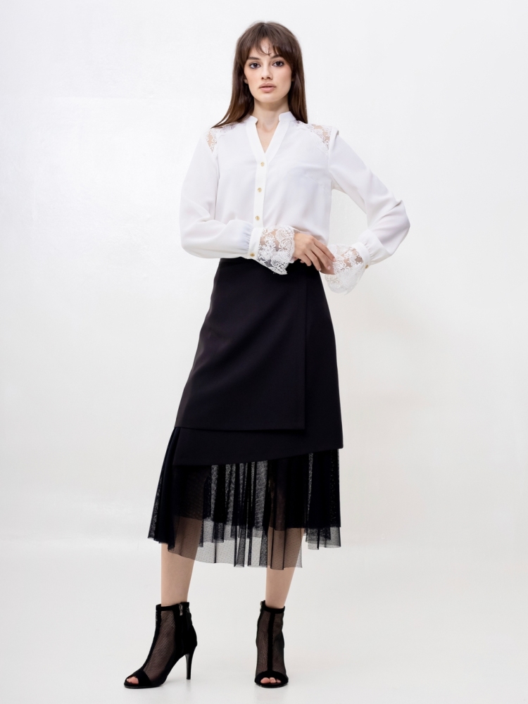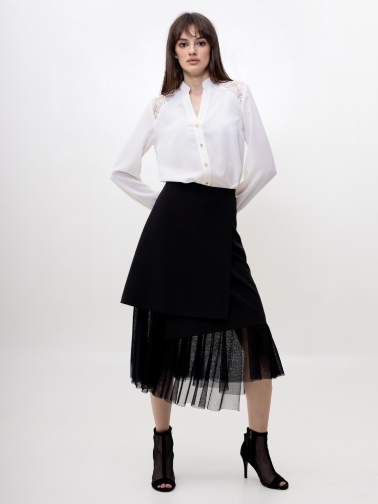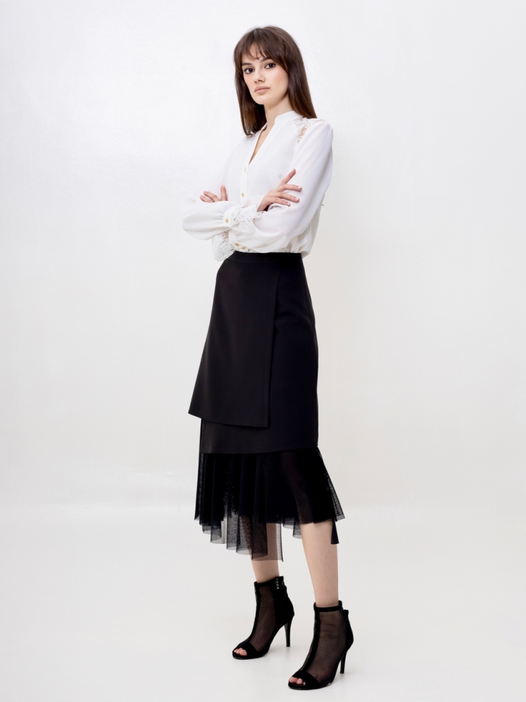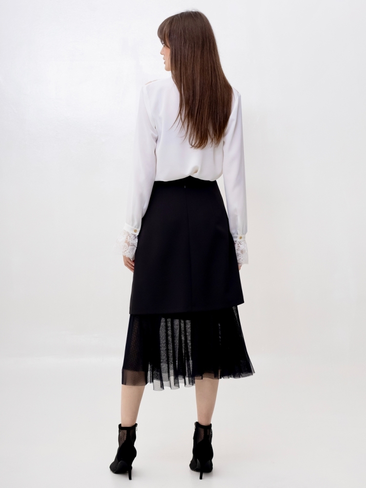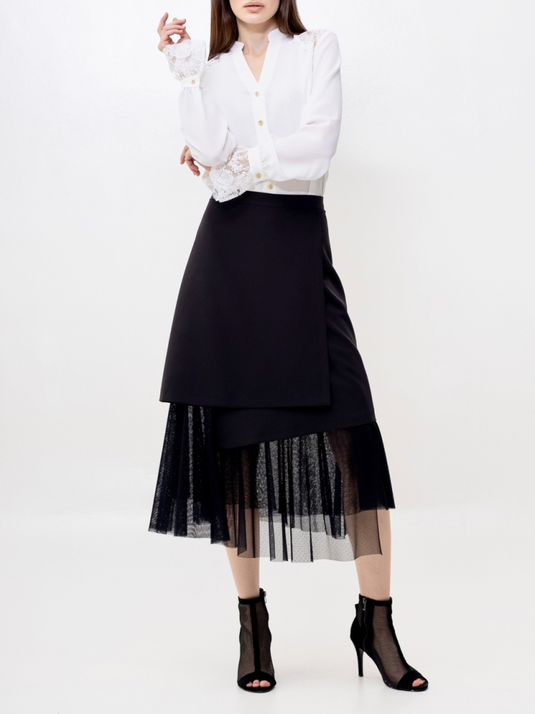 Представляем вам юбку, которая станет настоящей звездой вашего гардероба! Это идеальное сочетание изысканной элегантности и смелого современного стиля, созданное для тех, кто ценит оригинальность и безупречный вкус.