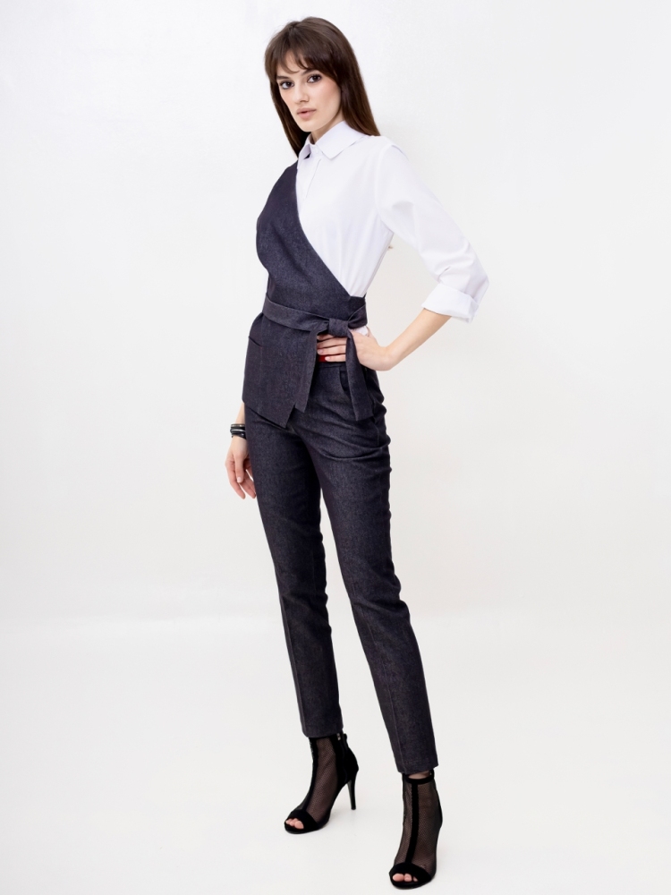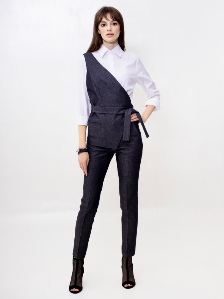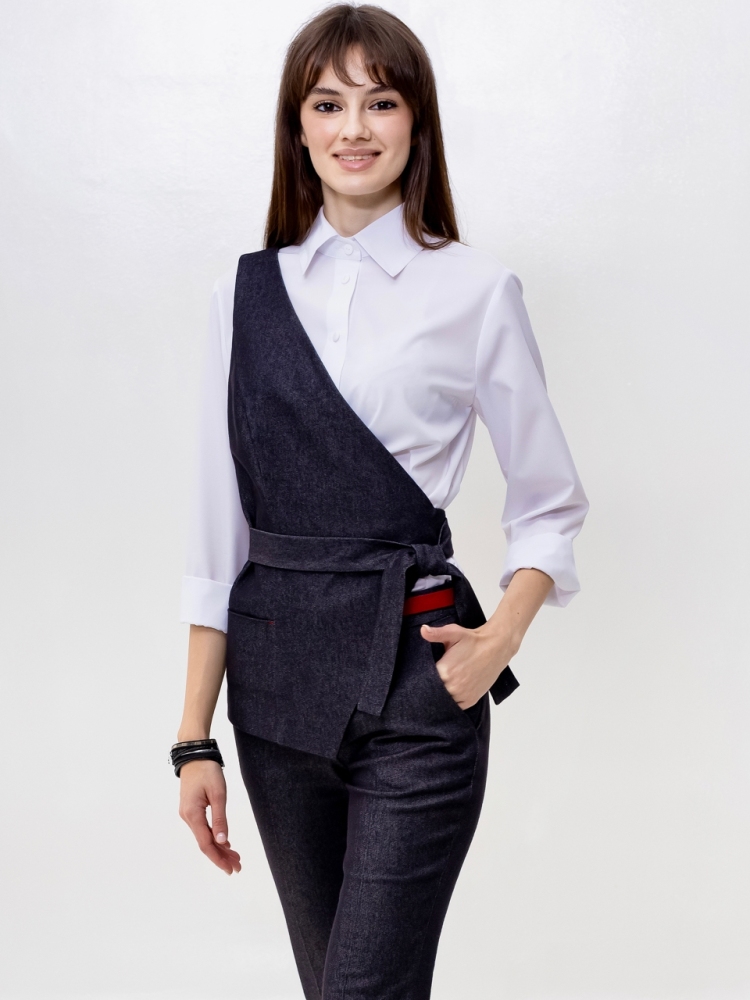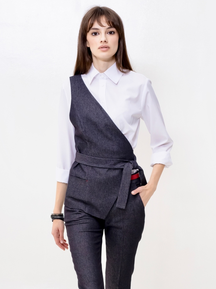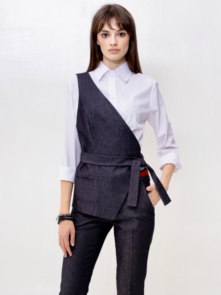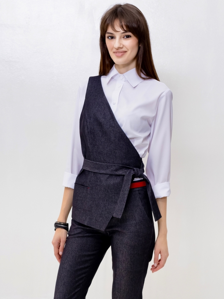 Жилет на одно плечо - это деловая классика для молодых девушек и женщин. Отличный выбор для создания стильного и элегантного образа. Жилетка нарядная и женственная, ее крой придает особый шарм и при этом подчеркивает изящные формы фигуры. Жилетка костюмная в джинсовом исполнении - это одежда на все случаи жизни и на любой сезон. Высококачественная ткань обеспечивает долгий срок службы этого изделия. Жилетка джинсовая женская больших размеров подходит для женщин с любой фигурой, отлично подчеркнёт ваши достоинства. Жилет джинсовый прекрасно подойдет подросткам для создания эффектных образов. В ней ваш образ будет выглядеть не только стильно, но и профессионально в офисной среде, добавляя нотку стильной классики в вашу повседневную одежду. Жилет асимметричный отлично подойдет для учителей в школу. Популярная среди работающих модниц, эта удлиненная безрукавка станет отличным дополнением к вашему деловому стилю и поможет вам выделиться из толпы. Женская жилетка асимметричная — это воплощение осенней романтики и изысканной элегантности. Этот нарядный предмет гардероба идеально подходит для вечерних выходов и станет звездой любого праздничного мероприятия. Жилетка превосходно дополнит ваш образ, будь то лёгкая блуза или водолазка, подчёркивая ваш стиль и утончённость. Осенние вечера требуют особой одежды, и эта жилетка сочетает в себе тепло демисезонной верхней одежды с необычным фасоном. Идеальный выбор для корпоративных вечеров, новогодних праздников или любых торжественных событий, где вы хотите выглядеть безупречно. Не откладывайте на потом - присоединяйтесь к рядам стильных и элегантных людей, которые уже оценили преимущества нашего товара. Закажите сейчас и получите возможность создать неповторимый образ, который будет привлекать восхищенные взгляды окружающих. Модель на подкладке. На полочке аккуратный прорезной карман. Рост девушки-модели - 175см., размер - 42.