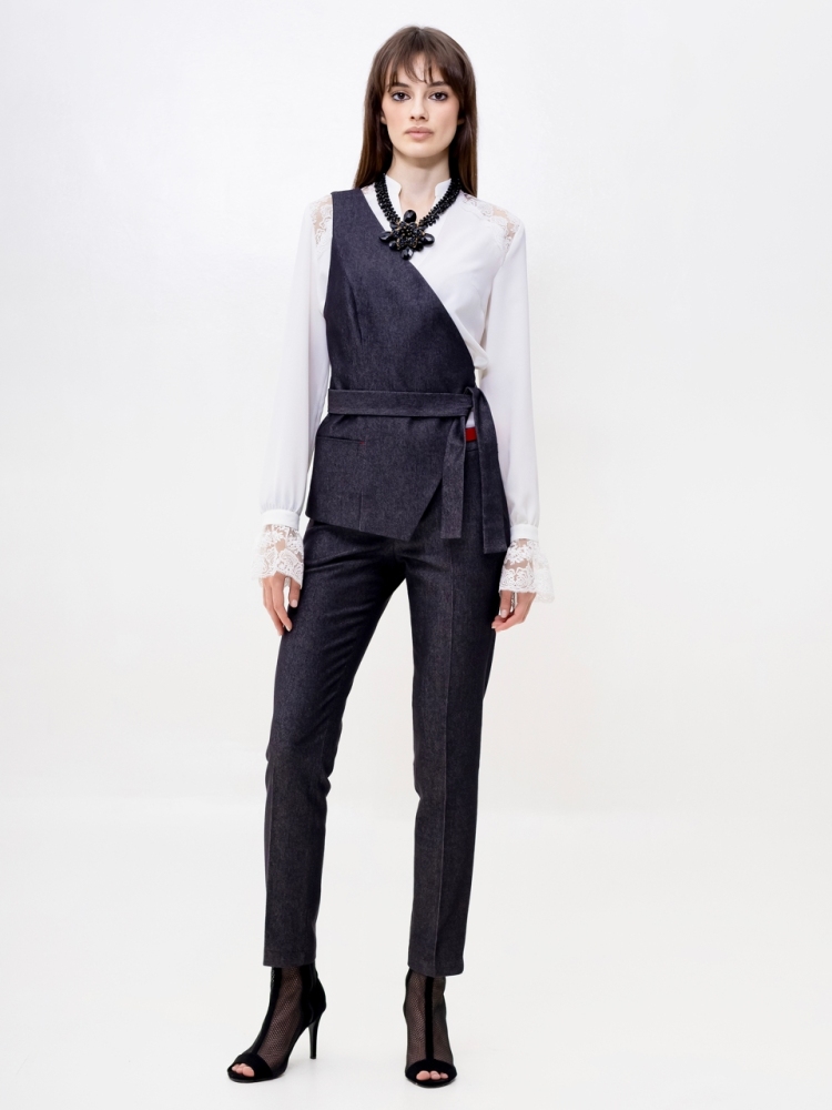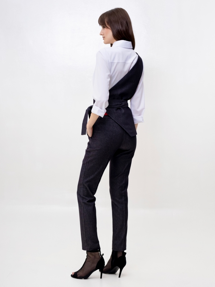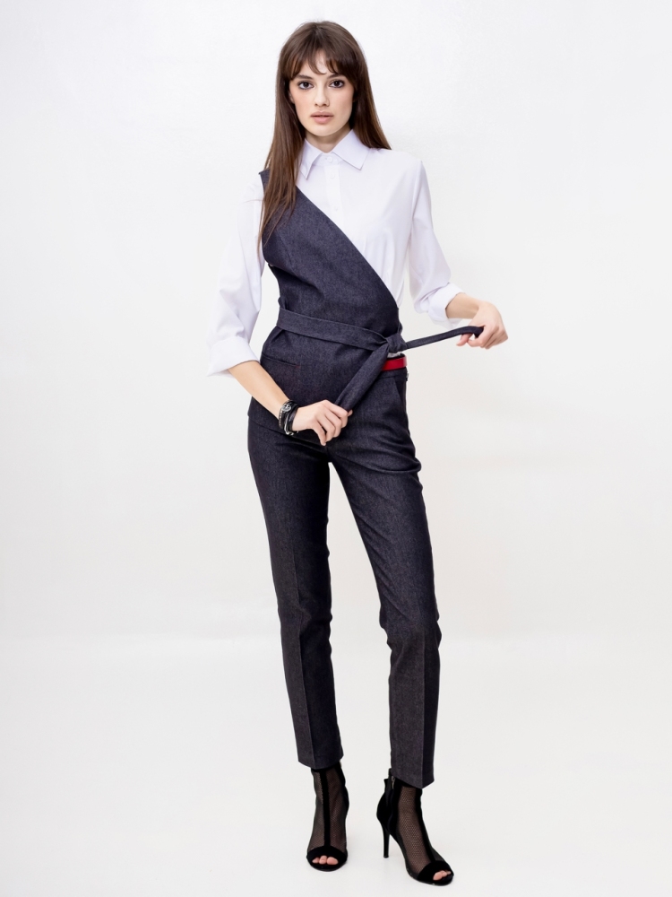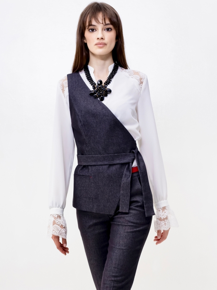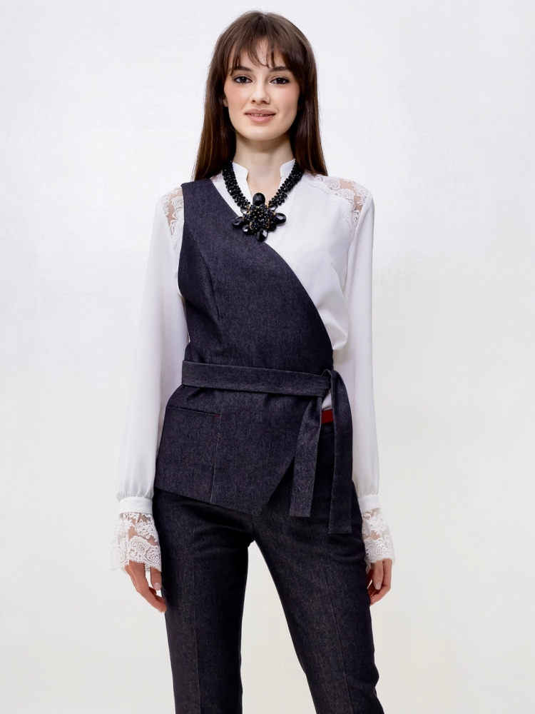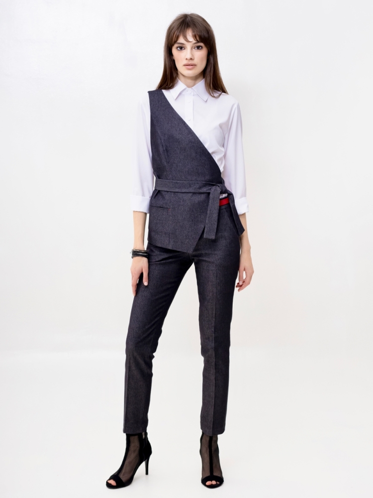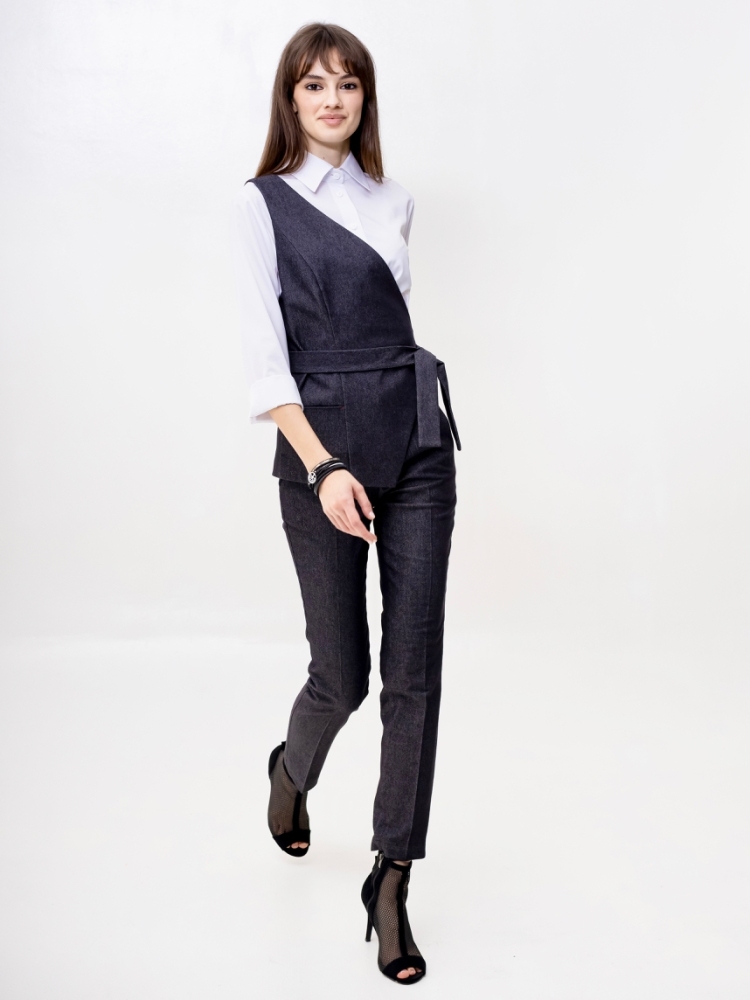 Жилет на одно плечо - это деловая классика для молодых девушек и женщин. Отличный выбор для создания стильного и элегантного образа. Жилетка нарядная и женственная, ее крой придает особый шарм и при этом подчеркивает изящные формы фигуры. Жилетка костюмная в джинсовом исполнении - это одежда на все случаи жизни и на любой сезон. Высококачественная ткань обеспечивает долгий срок службы этого изделия. Жилетка джинсовая женская больших размеров подходит для женщин с любой фигурой, отлично подчеркнёт ваши достоинства. Жилет джинсовый прекрасно подойдет подросткам для создания эффектных образов. В ней ваш образ будет выглядеть не только стильно, но и профессионально в офисной среде, добавляя нотку стильной классики в вашу повседневную одежду. Жилет асимметричный отлично подойдет для учителей в школу. Популярная среди работающих модниц, эта удлиненная безрукавка станет отличным дополнением к вашему деловому стилю и поможет вам выделиться из толпы. Женская жилетка асимметричная — это воплощение осенней романтики и изысканной элегантности. Этот нарядный предмет гардероба идеально подходит для вечерних выходов и станет звездой любого праздничного мероприятия. Жилетка превосходно дополнит ваш образ, будь то лёгкая блуза или водолазка, подчёркивая ваш стиль и утончённость. Осенние вечера требуют особой одежды, и эта жилетка сочетает в себе тепло демисезонной верхней одежды с необычным фасоном. Идеальный выбор для корпоративных вечеров, новогодних праздников или любых торжественных событий, где вы хотите выглядеть безупречно. Не откладывайте на потом - присоединяйтесь к рядам стильных и элегантных людей, которые уже оценили преимущества нашего товара. Закажите сейчас и получите возможность создать неповторимый образ, который будет привлекать восхищенные взгляды окружающих. Модель на подкладке. На полочке аккуратный прорезной карман. Рост девушки-модели - 175см., размер - 42.